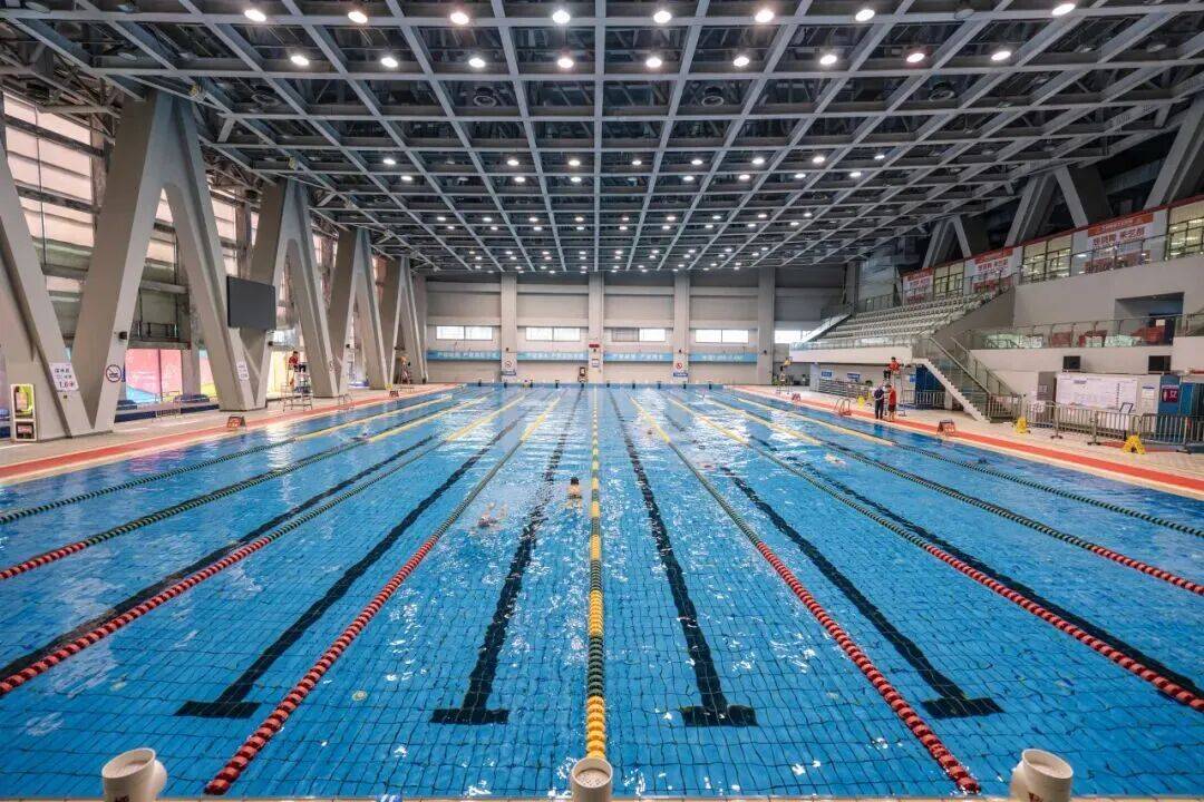 含8泳道50米室内恒温游泳池,水深1.4米-1.8米、水温27±0.5摄氏度,有相配套的更衣室、淋浴间。